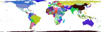 Mapa político. A vantagem desta projeção é indicar exatamente a proporção entre as áreas dos países.