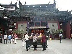 Dois eventos importantes ajudaram a promover os desenvolvimentos de Xangai na dinastia Ming . Uma muralha foi construída pela primeira vez em 1554 para proteger a cidade de ataques de piratas japoneses. Ela media dez metros de altura e cinco quilômetros decircunferência.[16] O Templo Cidade de Deus foi construído em 1602 durante o reinado de Wanli. Essa honra era geralmente reservada para capitais de província e normalmente não dada a uma mera sede de condado como Xangai. Estudiosos teorizaram que isso provavelmente refletia a importância econômica da cidade, em oposição ao seu baixo estatuto político.[16]