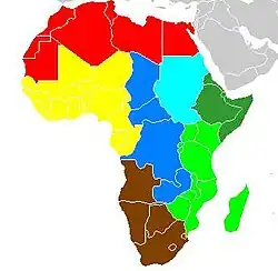 Outro exemplo pode ser dado com as divisões dos diversos tipos de música na África, para fins de etnomusicologia, proposto por Alan P. Merriam, 1959 [24] (ver mapa e verbete específico).