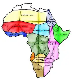 As áreas culturais da África foram traçadas em 1942 e revistas em 1945, segundo Herskovits, 1963 o.c. as primeiras divisões feitas após os esboços de Ratzel doram realizados por Ankermann Ankermann (1859-1943) e Frobenius (1873-1938) que identificaram nove áreas, a saber:
