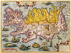 ![]() Ortelius com mapa da Islândia, circa 1590 | |