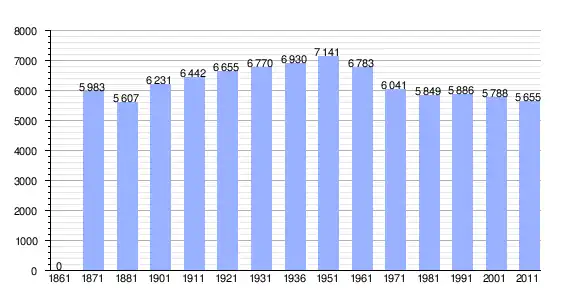 | Variação demográfica do município entre 1861 e 2011[3] |