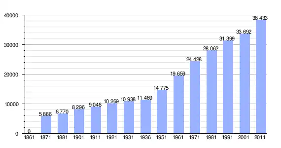 | Variação demográfica do município entre 1861 e 2011[3] |