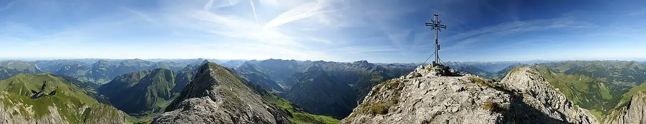 Panorama da localidade de Zitterklapfen (2403 m), região dos Alpes