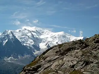 O ponto culminante dos Alpes é o monte Branco, com 4 810,45 m de altitude,[1] situado na fronteira franco-italiana ou próximo a ela, uma vez que a delimitação fronteiriça no maciço nunca foi consensual.