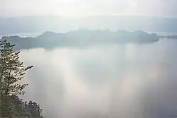 O Lago Towada, um lago em uma cratera, atravessa a fronteira entre Akita e Aomori.