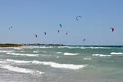 As áreas costeiras, principalmente no Adriático e no sul do Salento são frequentemente expostas a ventos de diversas intensidades e direções, que afetam fortemente a temperatura do ar e outras condições climatéricas, por vezes num mesmo dia. O vento norte Bora do Adriático pode baixar as temperaturas e humidade, amenizando o calor estival, enquanto que o Siroco, vindo do Norte de África tem o efeito contrário, além de por vezes trazer poeira vermelha do Sara. Em alguns dias de primavera e outono pode fazer calor suficiente para tomar banho no mar em Gallipoli e Porto Cesareo, no extremo sul, na costa do mar Jónico, enquanto que ao mesmo tempo, ventos frios obrigam ao uso de agasalhos em Monopoli e Otranto, na costa adriática.