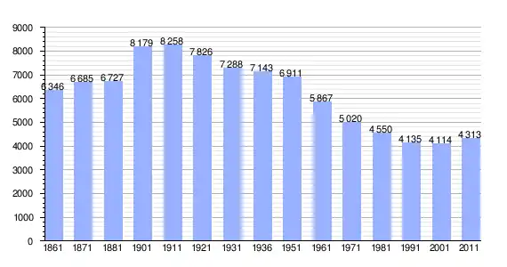 | Variação demográfica do município entre 1861 e 2011[3] |