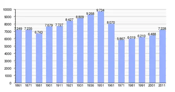 | Variação demográfica do município entre 1861 e 2011[3] |