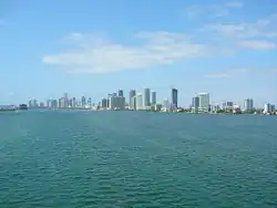 Baía Biscayne Porção sul da Baía Biscayne com o centro financeiro de Miami, ao fundo