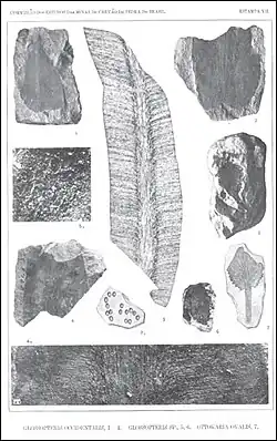 - 1 2 White, David (1908) Flora Fóssil das Coal Measures do Brasil, pp. 337-617 + 14 estampas (inglês) IN: White, I.C. (1908) "Commissão de Estudos das Minas de Carvão de Pedra do Brazil”, Relatório Final, Parte III, Imprensa Nacional, Rio de Janeiro, Brazil, 617 pg. (Relatório bilíngue, em português e inglês). Edição facsimilar de 1988, DNPM