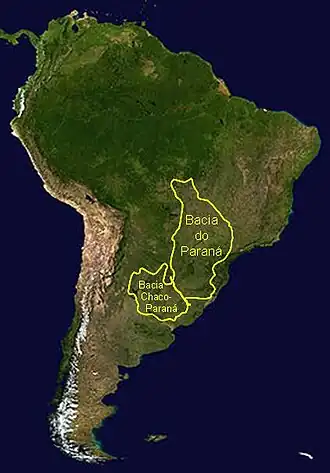 A Bacia Geológica do Paraná, ou simplesmente Bacia do Paraná é uma ampla bacia sedimentar situada na porção centro-leste da América do Sul. A sua área de ocorrência abrange, principalmente, o centro-sul do Brasil, desde o estado do Mato Grosso até o estado do Rio Grande do Sul, onde perfaz cerca de 75% de sua distribuição areal. Além do Brasil, ela também distribui-se no nordeste da Argentina, na porção leste do Paraguai e no norte do Uruguai. É uma depressão ovalada, com o eixo maior no sentido quase norte-sul, e possui uma área de cerca de 1,5 milhão de km².[1][2]