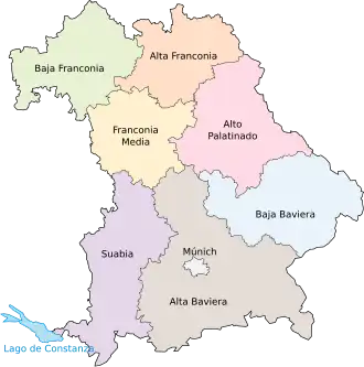 A Baviera contemporânea também inclui partes das regiões históricas da Francônia e da Suábia, além de Altbayern.