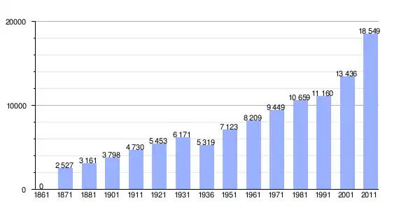 | Variação demográfica do município entre 1861 e 2011[3] |