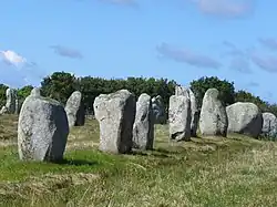 A Bretanha neolítica é caracterizada pela importante produção megalítica e por locais como Quelfénnec, sendo às vezes designada como a "área central" da cultura megalítica.[18] Os monumentos mais antigos, os moledros, foram seguidos por túmulos principescos e fileiras de pedras. O departamento de Morbihan, no litoral sul, compreende uma grande parte dessas estruturas, incluindo as rochas de Carnac e o menir quebrado de Er Grah nos megálitos de Locmariaquer, a maior pedra única erguida por povos neolíticos.