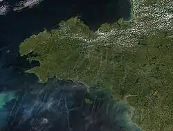 A Bretanha (francês: Bretagne [bʁətaɲ] (ⓘ); bretão: Breizh, pronuncia-se [bʁɛjs] ou [bʁɛx];[1] galo: Bertaèyn [bəʁtaɛɲ]) é uma península, região histórica e área cultural no noroeste da França moderna, abrangendo a parte ocidental do que era conhecido como Armórica durante o período de ocupação romana. Tornou-se um reino independente e depois um ducado antes de se unir ao Reino da França em 1532 como uma província governada como uma nação separada sob a coroa.