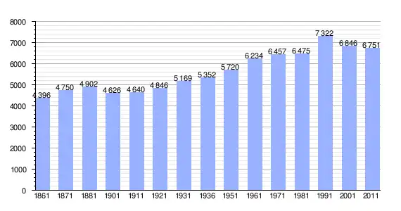 | Variação demográfica do município entre 1861 e 2011[3] |
