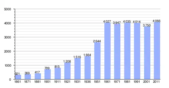 | Variação demográfica do município entre 1861 e 2011[3] |