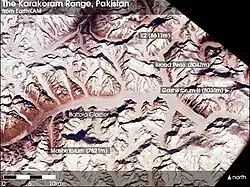 O Caracórum,[1][2][3] também grafado Caracoram,[4] Karakorum e Karakoram (chinês tradicional: 喀喇崑崙山脈, chinês simplificado: 喀喇昆仑山脉, pinyin: Kālǎkūnlún Shānmài; em hindi: काराकोरम, Kārākōrama; em urdu: سلسلہ کوہ قراقرم), é uma cordilheira localizada na fronteira entre Paquistão, China e Índia, nas regiões de Guilguite, Ladaque e Baltistão. É uma das grandes cordilheiras da Ásia. Por vezes, é considerada parte do Himalaia, embora, tecnicamente, não o integre. "Caracórum" significa "cascalho negro" em turcomano, devido ao fato de que diversas de suas geleiras estão recobertas por aquele material.