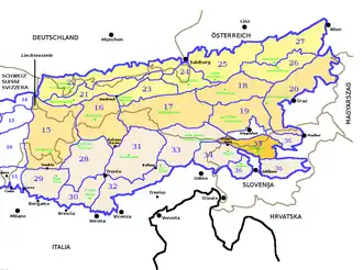 - Secção alpina = Alpes da Caríntia e Eslovenos
