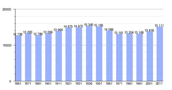| Variação demográfica do município entre 1861 e 2011[3] |