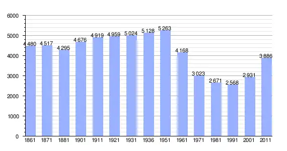 | Variação demográfica do município entre 1861 e 2011[3] |
