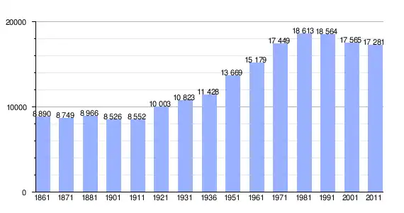 | Variação demográfica do município entre 1861 e 2011[3] |