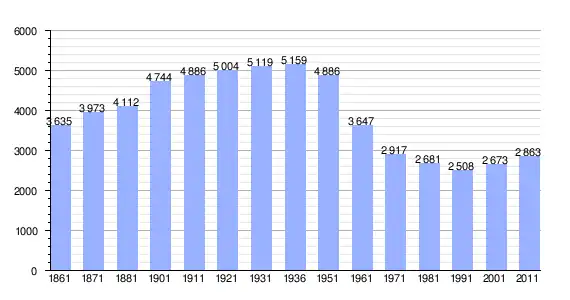 | Variação demográfica do município entre 1861 e 2011[3] |