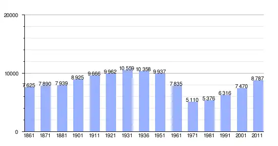 | Variação demográfica do município entre 1861 e 2011[3] |