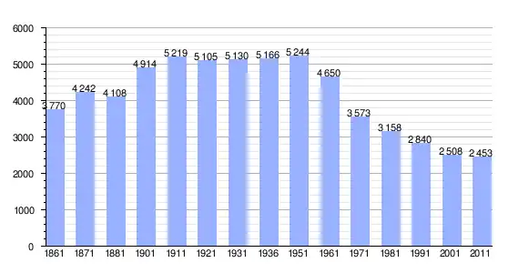 | Variação demográfica do município entre 1861 e 2011[3] |