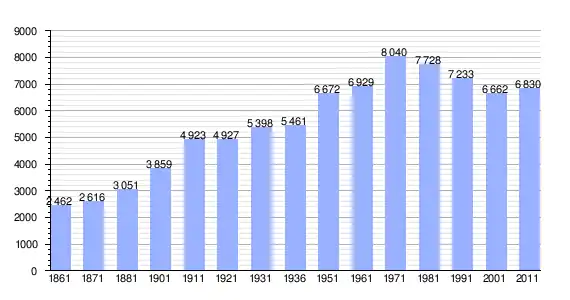 | Variação demográfica do município entre 1861 e 2011[3] |