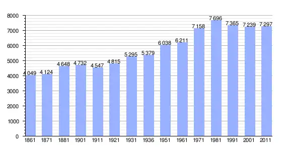 | Variação demográfica do município entre 1861 e 2011[3] |