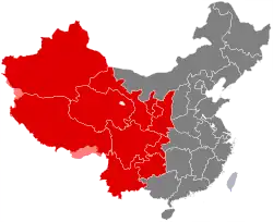A China ocidental é a região oeste da China. Na definição do governo chinês, a China ocidental cobre seis províncias: Gansu, Guizhou, Qinghai, Shaanxi, Sichuan e Yunnan; cinco regiões autônomas: Guangxi, Mongólia Interior, Ningxia, Tibete e Xinjiang; e um município: Chongqing.