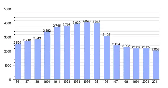 | Variação demográfica do município entre 1861 e 2011[3] |