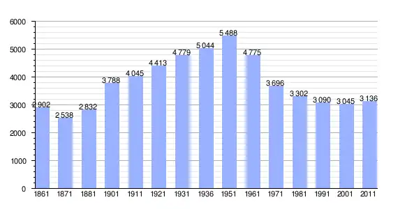 | Variação demográfica do município entre 1861 e 2011[3] |