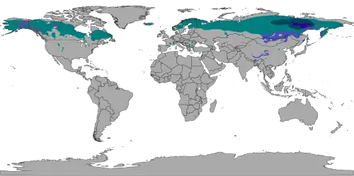 Mais ao norte da Sibéria, a continentalidade aumenta tanto que os invernos podem ser excepcionalmente severos, com temperatura média abaixo de −38 °C, embora o mês mais quente ainda apresente uma média superior a 10 °C. Isso cria climas do tipo Dfd, Dwd e Dsd.[12]