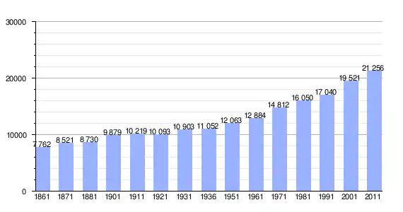 | Variação demográfica do município entre 1861 e 2011[3] |