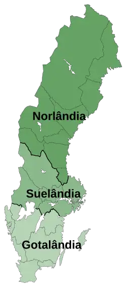 - 1 2 3 Monika Linder, Anna Holmlin Nilsson, Christina Friborg, Henrik Isacsson (2020). «Regioner». Utkik Samhällskunskap 7-9 (em sueco). Malmö: Gleerups. p. 221. 296 páginas. ISBN 9789151101439