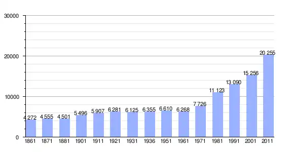 | Variação demográfica do município entre 1861 e 2011[3] |