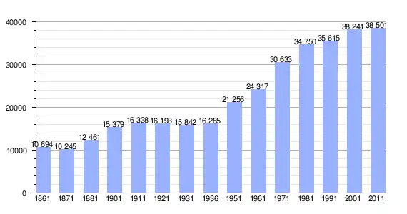 | Variação demográfica do município entre 1861 e 2011[3] |