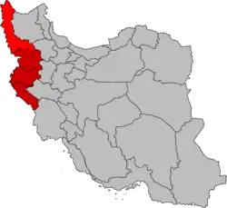 O Curdistão iraniano não deve ser confundido com a província do Curdistão, que abrange apenas um oitavo das áreas habitadas por curdos no Irã. Ele inclui também a maior parte das províncias do Azerbaijão Ocidental, Província de Quermanxá e Província de Ilão.
