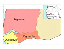 - ↑ Département de Koungheul na Wikipedia:Francês