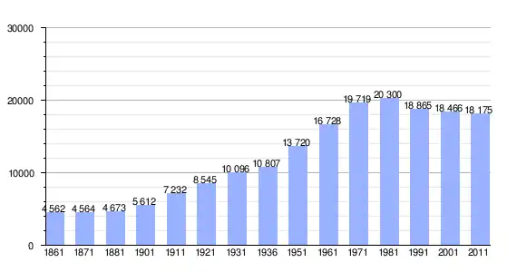 | Variação demográfica do município entre 1861 e 2011[3] |