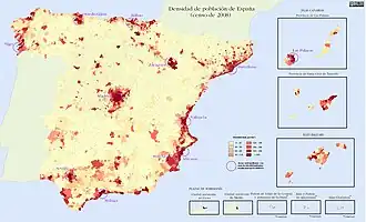 Espanha (em castelhano: España; [esˈpaɲa] (ⓘ)), oficialmente Reino de/da Espanha (Reino de España),[nt 1][nt 2] é um país principalmente localizado na Península Ibérica na Europa. Seu território também inclui dois arquipélagos: as ilhas Canárias, na costa da África, e as ilhas Baleares, no mar Mediterrâneo. Os enclaves africanos de Ceuta e Melilla fazem da Espanha o único país europeu a ter uma fronteira terrestre com um país africano (Marrocos). Várias pequenas ilhas no mar de Alborão também fazem parte do território espanhol. A Espanha continental é limitada a sul e a leste pelo Mediterrâneo, exceto por uma pequena fronteira terrestre com Gibraltar; a norte e a nordeste pela França, por Andorra e pelo Golfo da Biscaia; e a oeste e noroeste por Portugal e pelo Oceano Atlântico. Com uma área de 505 990 km2, a Espanha é o maior país da Europa Meridional, o segundo maior país da Europa Ocidental e da União Europeia (UE) e o quarto maior país de todo o continente europeu. Também é o sexto país mais populoso da Europa e o quarto da UE. A capital e maior cidade é Madri; outras grandes áreas urbanas incluem Barcelona, Valência, Sevilha, Málaga, Bilbau e Granada.