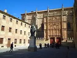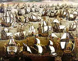 A unificação das coroas de Aragão e Castela lançou as bases para a Espanha moderna e para o Império Espanhol.[40] Espanha era a maior potência da Europa durante o século XVI e a maior parte do século XVII, posição reforçada pelo comércio e pela riqueza de suas possessões coloniais. Atingiu o apogeu durante os reinados dos dois primeiros habsburgos espanhóis, Carlos I (1516–1556) e Filipe II (1556–1598). Este período foi marcado pelas Guerras Italianas, Revolta dos Comuneiros, Revolta Holandesa, Rebelião das Alpujarras, conflitos com os otomanos, a Guerra Anglo-Espanhola e as guerras com a França.[41]