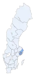- ↑ «Stockholms län» (em sueco). Hitta.se – Interaktiv karta (Mapa interativo). Consultado em 28 de abril de 2020
