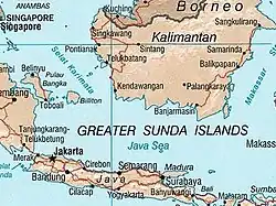 Tem cerca de 207 km de largura, entre Bornéu e Bilitom. Bilitom é uma ilha separada de Banca pelo estreito de Gaspar. As ilhas Carimata ficam neste estreito, a nordeste de Bilitom e mais próximas de Bornéu.