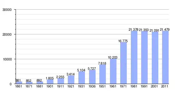 | Variação demográfica do município entre 1861 e 2011[3] |