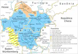 - Francônia Superior ou Alta Francônia (Oberfranken) com a capital Bayreuth