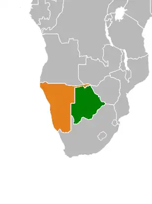 ![]() Localização de Botswana (verde) e Namíbia (laranja). | |